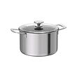 This pot has a heat resistant glass lid with a built in strainer.